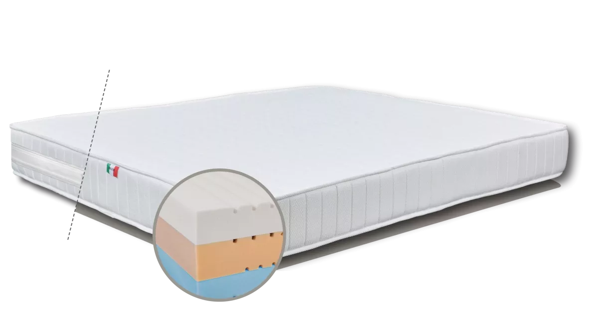 The sandwich inner structure, made of a layer of memory foam within two layers of flexible and un-deformable polyurethane ensures a balanced and ergonomic support and guarantees a healthy relaxation of the back. Lift has a cotton jersey undercover. For outstanding hygiene, the outer cover is completely removable and washable at 40°C. Outer shell with anti-bacterial treatment certified for 10 years in available upon request.