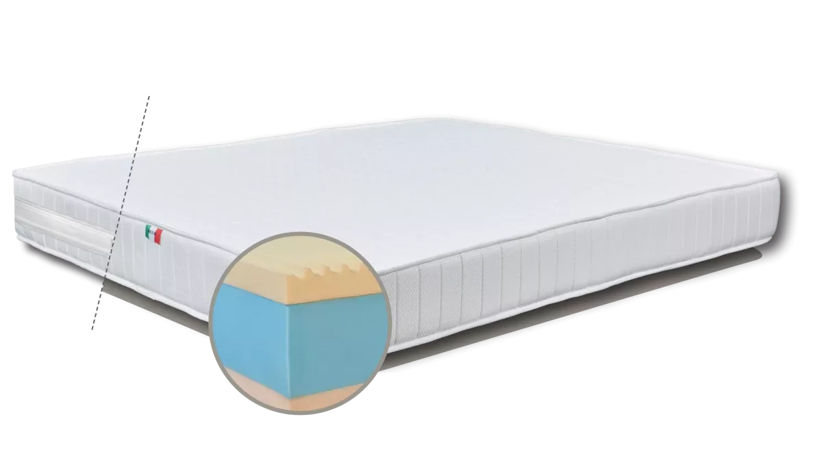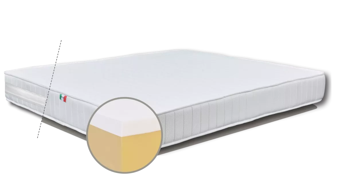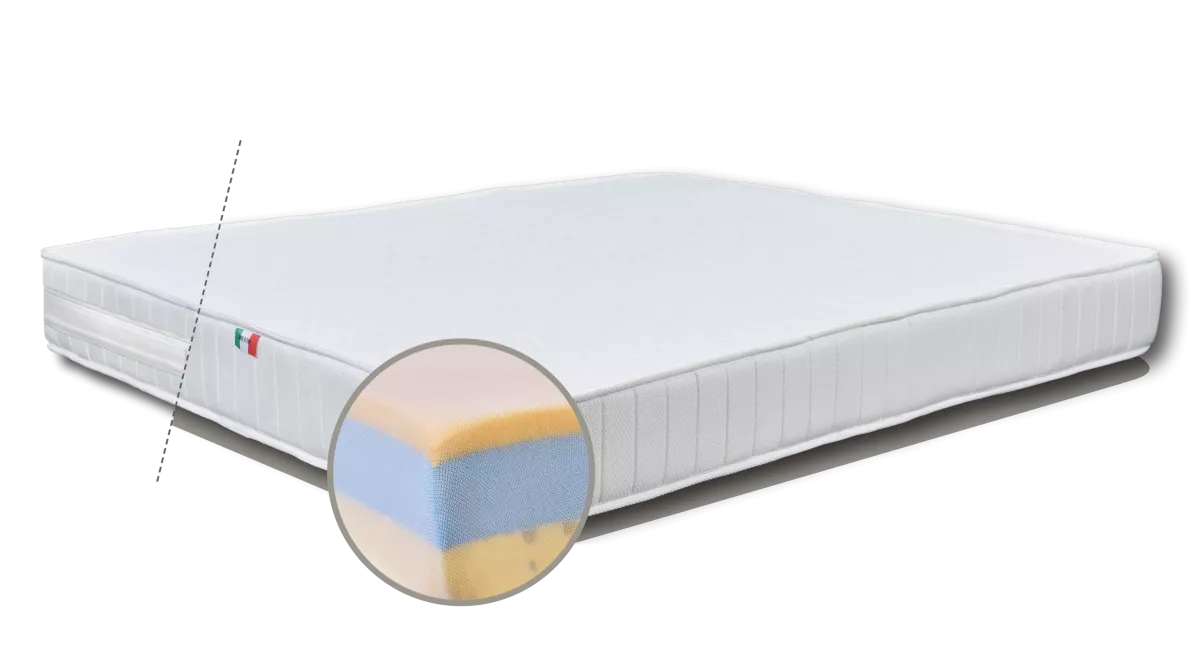 Grazie alla sua struttura a sandwich composta uno strato di Memory Foam, racchiusa tra due strati di poliuretano elastici ed indeformabili, il materasso Lift offre un sostegno equilibrato e ortopedico e procura un benefico rilassamento della schiena. Il materasso Lift è dotato di una sottofedera in cotone jersey. Per un’igiene ottimale, il rivestimento esterno, in tessuto trapuntato da 180gr/m2 in poliestere silver o aloe vera, è completamente sfoderabile e lavabile ad acqua a 40°C. Su richiesta è disponibile la fodera esterna con trattamento antibatterico certificato 10 anni.